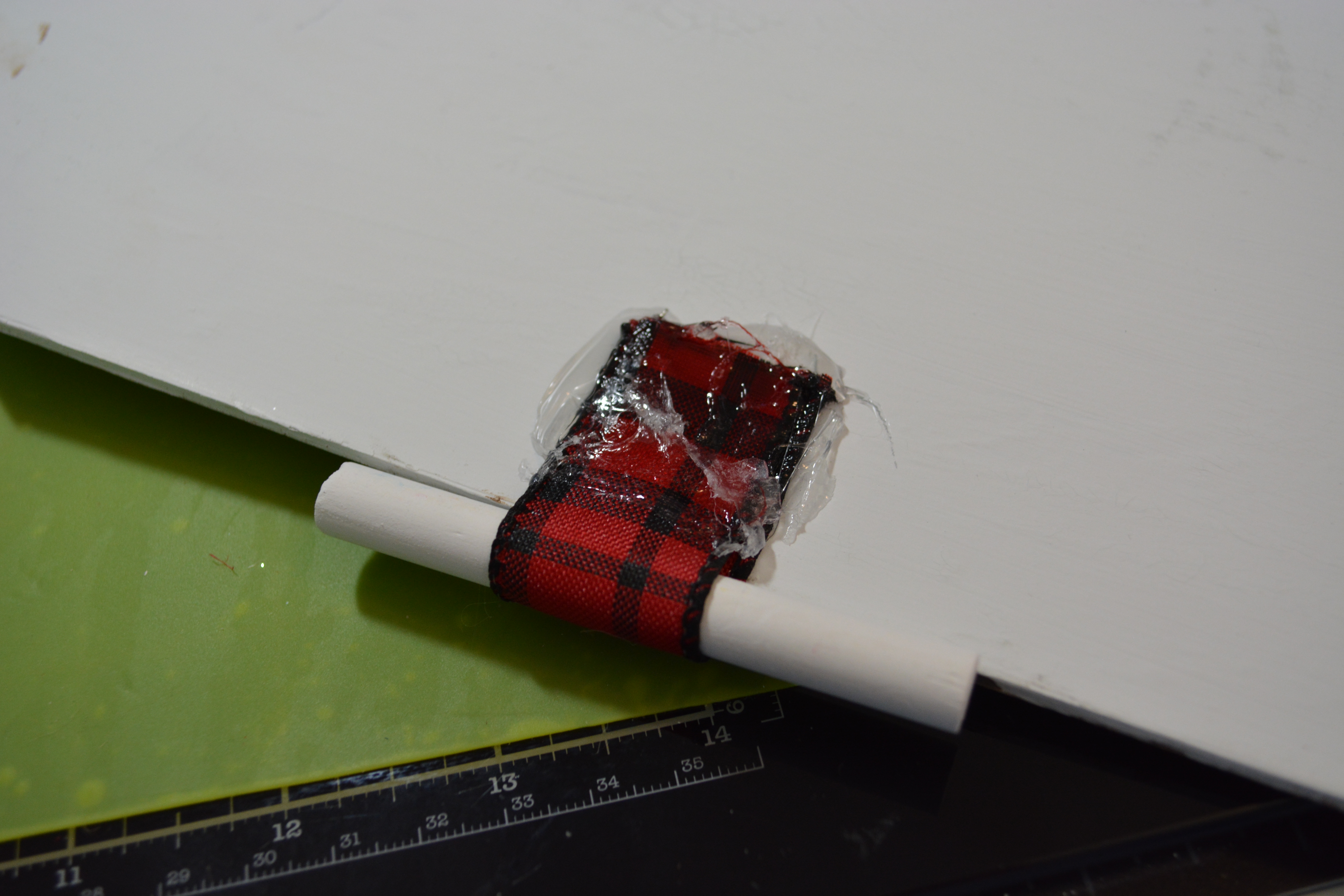 Now I send pictures to a few trusted people to see if they like what I create and if they think it is missing anything. Well I had a friend suggest that I add a piece of chalk somehow. I was going to hang it from string at the top of the sign but I did not want it to stay in front of all the words so I then decided to put the chalk on the side of the sign. This was done with ribbon.