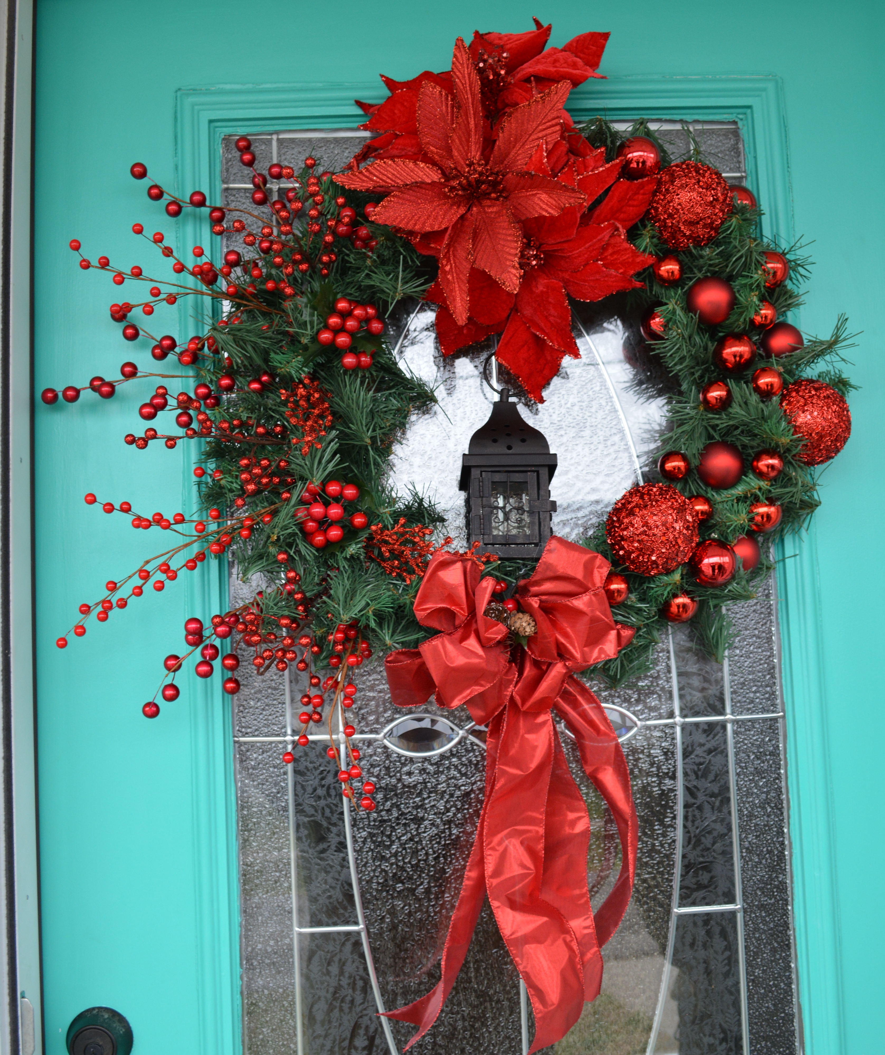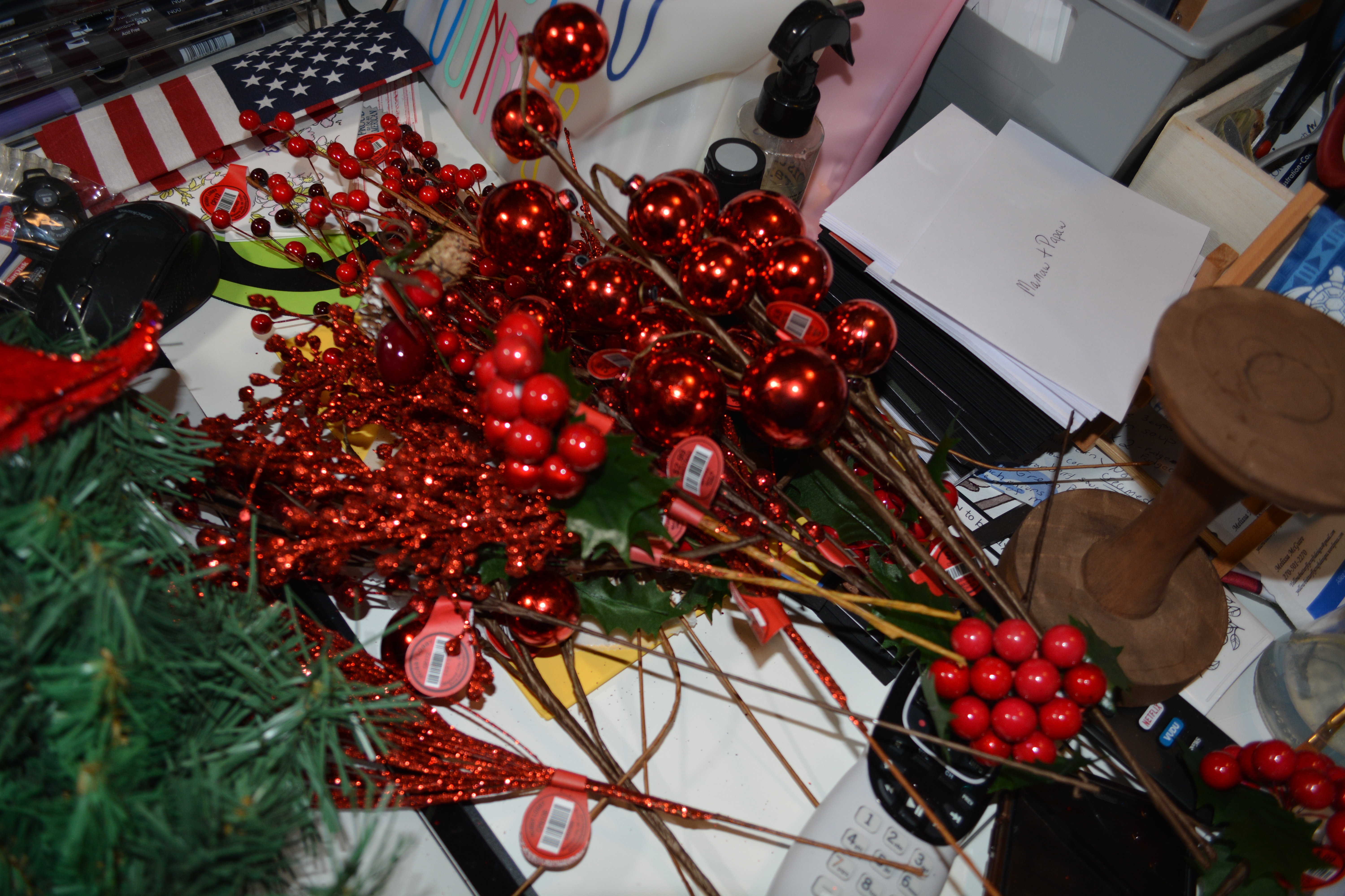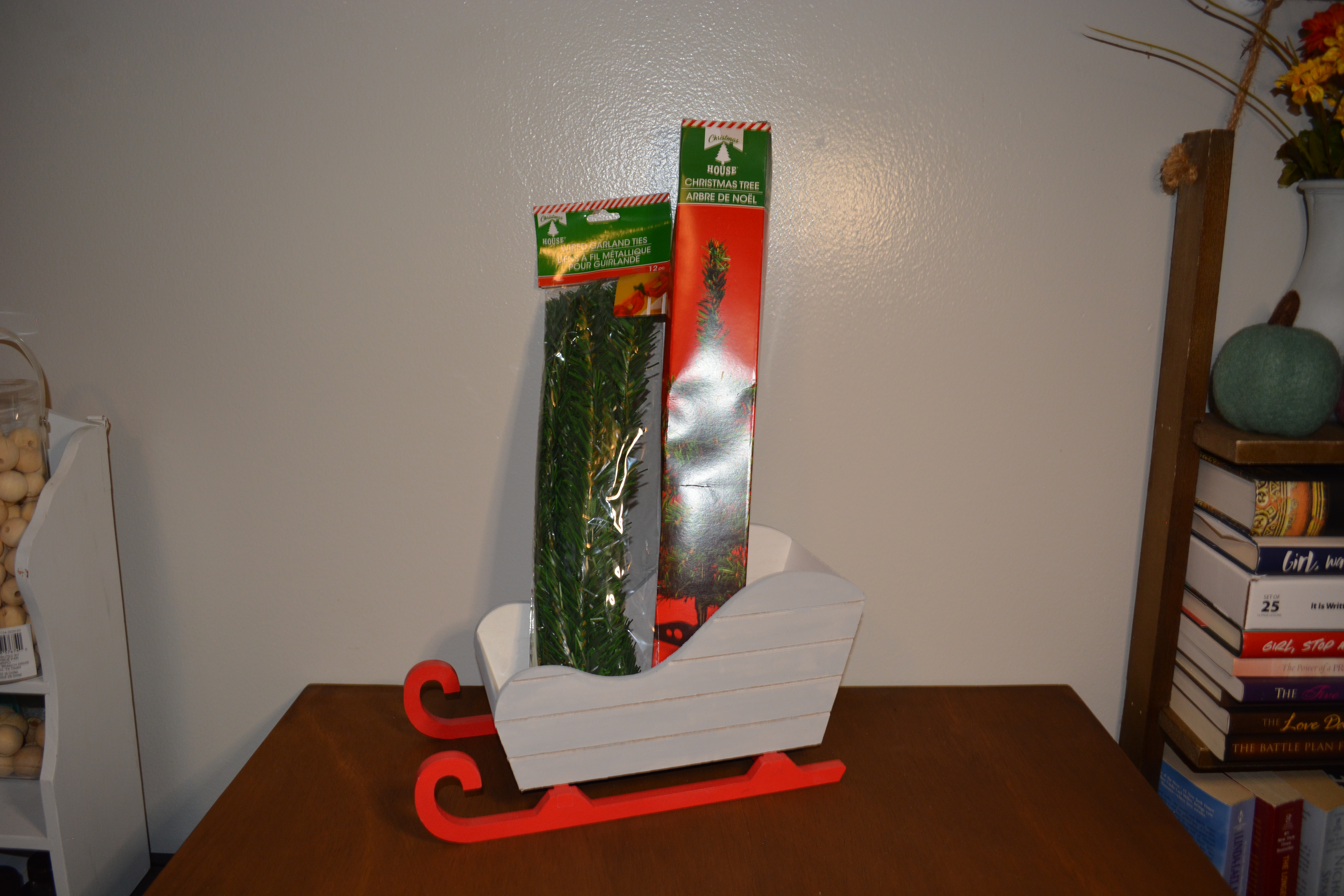 Around the top of the mantle, I hot glued 2 garland ties that I twisted together. From there I glued the stocking to it.