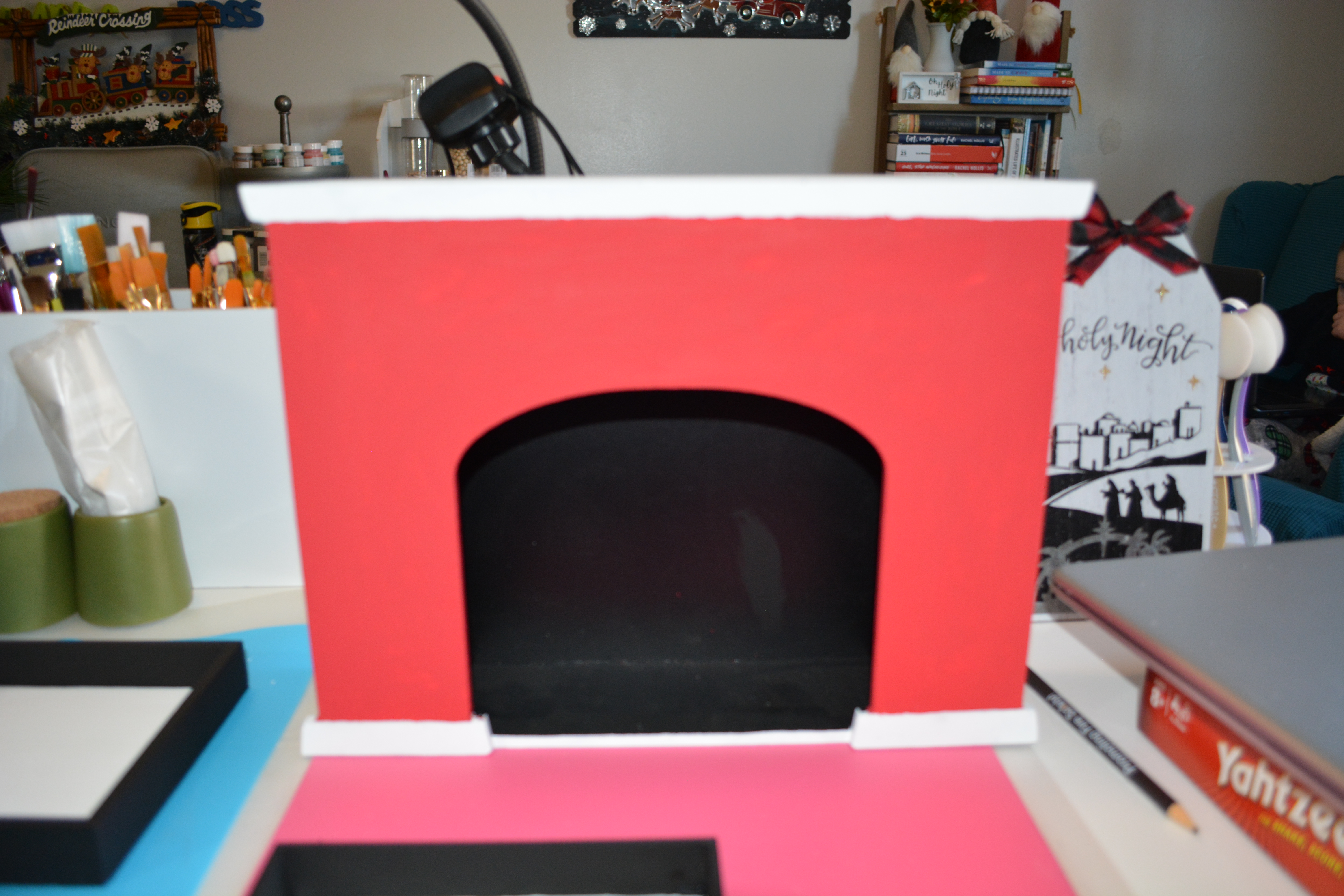 Yes this project took two weeks. Yes it was COMPLETELY worth it. I love this so much. It is Christmas all wrapped up in one scene. This is great for someone with a small apartment or if you do not want to put up a ton of decor but want a bit of Christmas. This fireplace can be decorated however you want. Lots of bottle brush trees on the top would be pretty or making lots of mini Christmas carts to line up across it. The possibilities are endless.