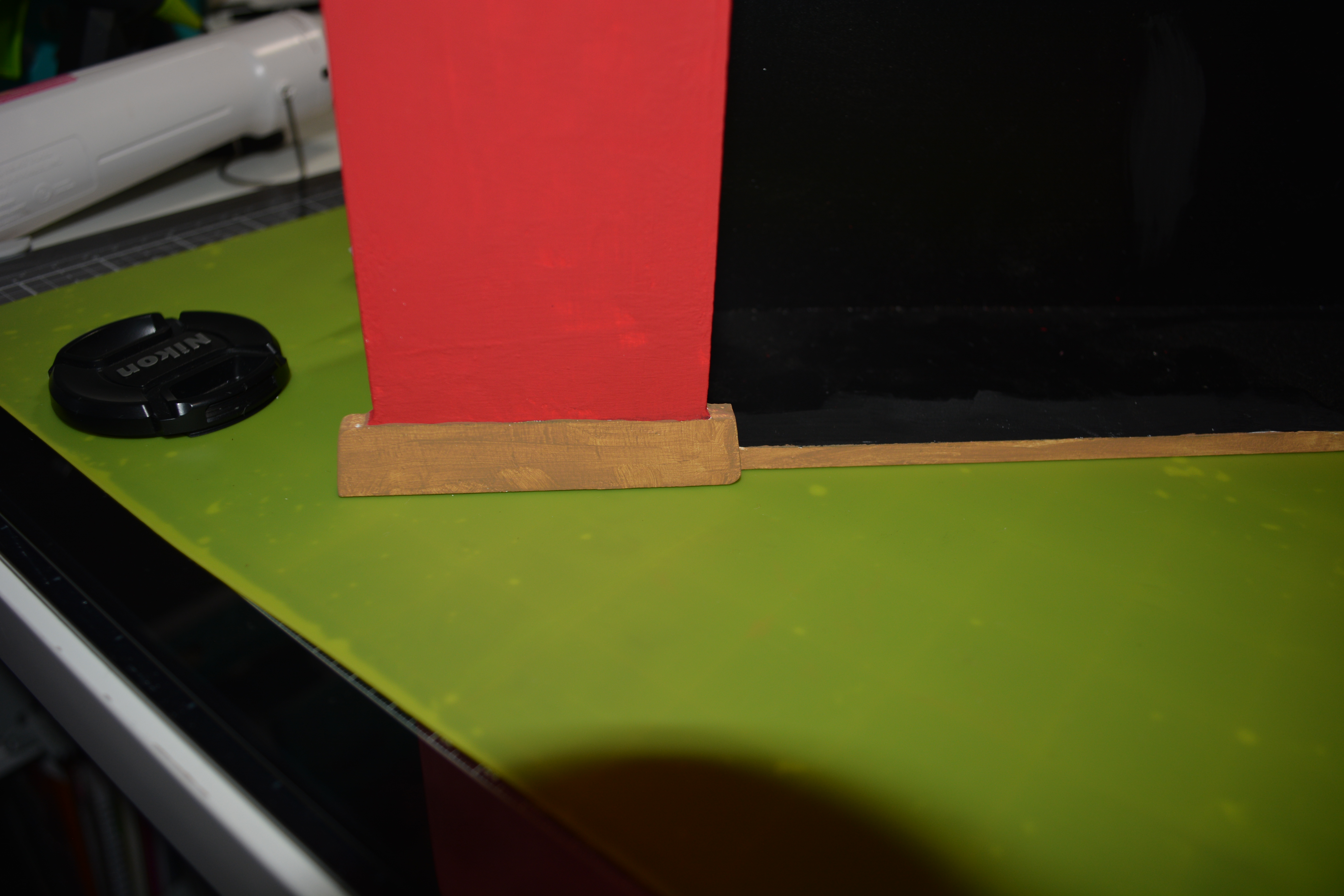 It is time to assemble everything. I started with the inside of the fireplace. I knew I wanted fairy lights inside the fireplace so I drilled a hole in the bottom back of it and fed some of the fairy lights through. Next I glued the wood and tiny pieces of felt down. After that I molded the flames the way I wanted them and hot glued them in place. I did not glue them on top of each other. I left some space between them. Finally, I moved the fairy lights around the flames and hot glued them down where they needed it. I did this will the fairy lights on so that I could see where the light would shine.