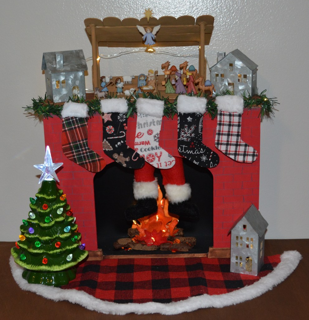 So I have worked for over two weeks on this fireplace. The Fireplace itself is from Target. It was a Halloween decoration that had something to do with potions but as soon as I first laid eyes on it, I knew exactly what I was going to do with it. It was going to be transformed into a beautiful fireplace with Santa coming down the chimney. I even built a manger out of popsicle sticks to put on the mantle. This project really challenged me to think outside of the box to make each piece of this. Please come along as I tell you how I created this cute fireplace scene.